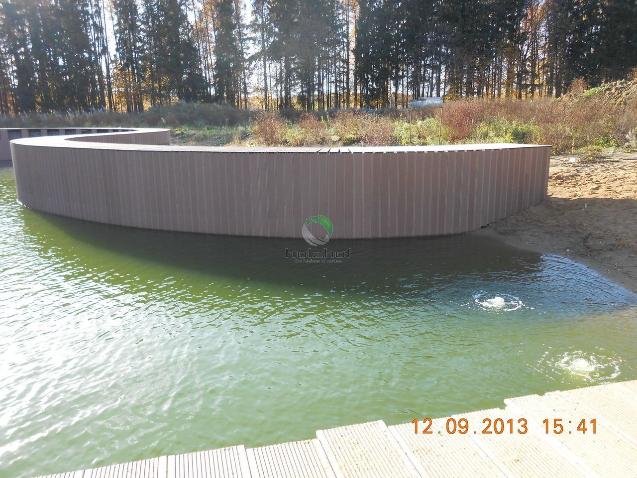 Что может быть лучше, чем отдых и рыбалка на берегу живописного озера? Только рыбалка на озере с уловом! Но, любой отдых на природе, складывается из мелочей, которые в последствие и представляют общую картину. Для благоустройства частного озера требуется много времени и много сил. Важно учитывать множество мелочей, а самое главное, это подбор материалов, для облагораживания водной гавани. Именно такая задача стояла перед нашими специалистами, при подборе террасной доски для облагораживания частного озера. При работе были выбраны террасные доски Универсальная и Декрон, которые отлично вписались в интерьер озера, при этом обладая всеми необходимыми свойствами, которые позволяют поддерживать искусственный водоём, в надлежащем состояние.
